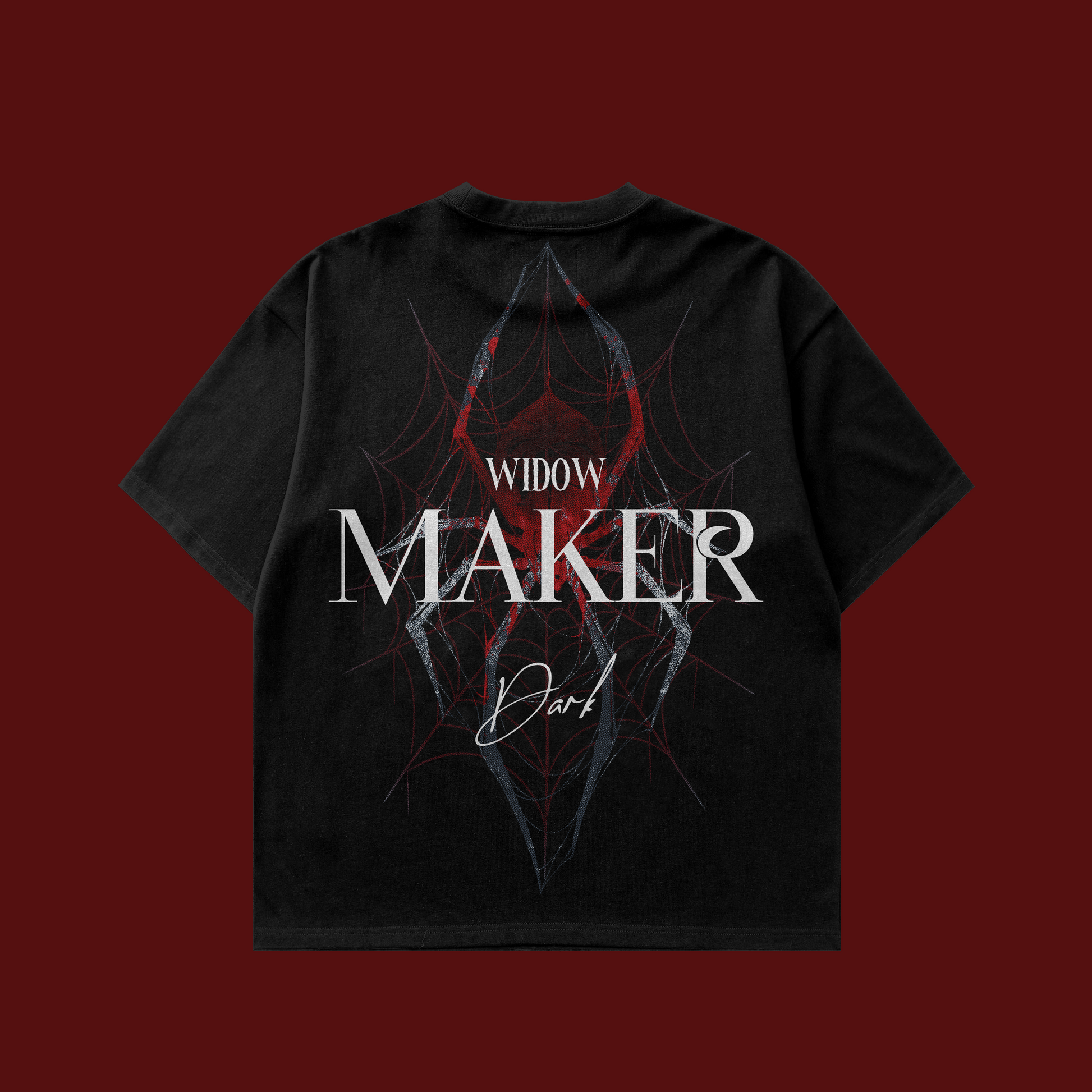 Widowmaker t-shirt from Dark. This oversized boxy black tee features a black widow.